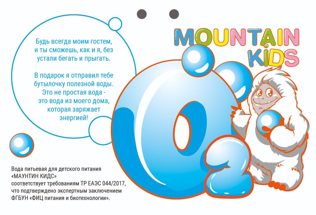 Mountain Kids (“Маунтин Кидс”) – горная вода, созданная природой специально для детей. Добывается в Урупском районе Карачаево-Черкесии и проходит естественную фильтрацию горных пород. Содержит оптимальный состав минеральных веществ для нормального роста и развития ребенка. А строгий контроль за розливом и составом воды позволяет не беспокоиться за ее качество и чистоту. Эталонное количество природного кислорода в воде Mountain Kids способствует клеточному дыханию и повышению иммунитета.